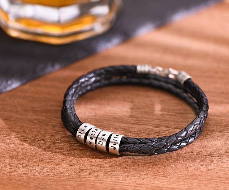Ein weiterer großer kommender Trend ist das schwarzes Lederarmband für Herren mit Gravur auf kleinen personalisierten Beads in Silber. Dieses schicke und coole Namensarmband wird alle Ihre Freunde beindrucken, sie werden los rennen, um es auch zu bekommen! Bei uns erhalten Sie besten und neuesten personalisierten Schmuck mit Gravur in Gold zu erschwinglichen Preisen! Bleiben Sie auf dem neuesten Stand, indem Sie unsere Seite mit unseren Neuheiten besuchen!