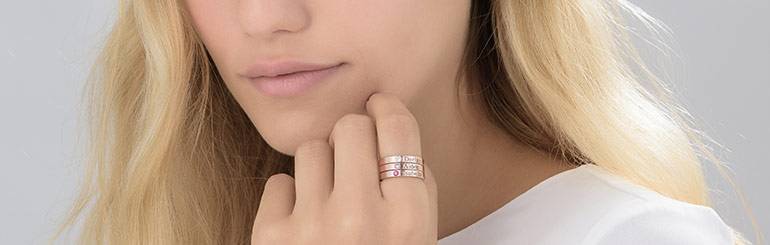 Wenn Sie einen Ringstapel anlegen, ist die wichtigste Regel, dass es keine Regeln gibt. Mixen Sie Ihre edlen Metalle, kombinieren Sie sie mit Farben, unterhalb des Knöchels, oberhalb des Knöchels, was immer auch Sie glücklich macht! Das Wesen des Ringstapels besteht darin, dass Sie Ihrer Kreativität jeden Tag aufs Neue auf tolle Weise freien Lauf lassen können!