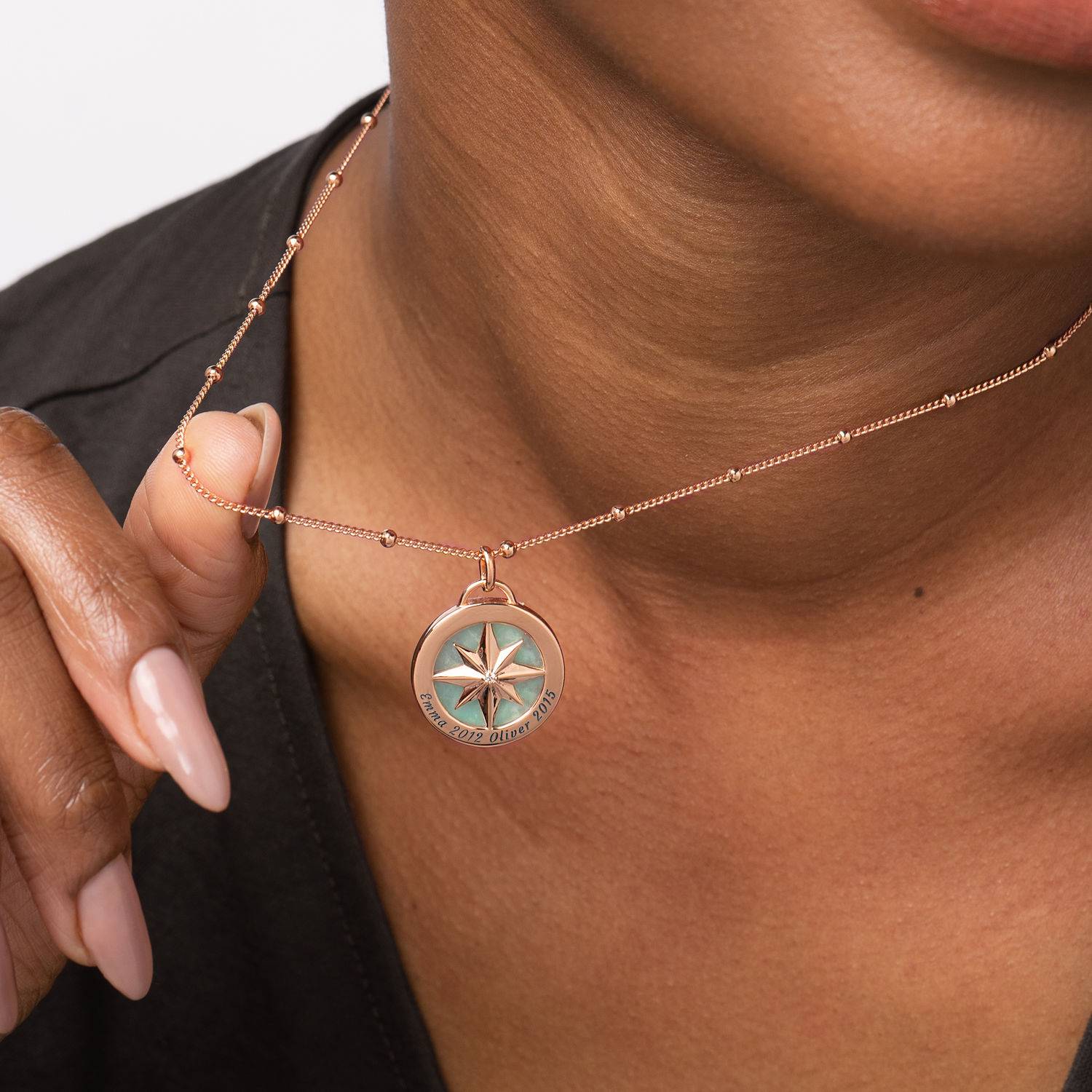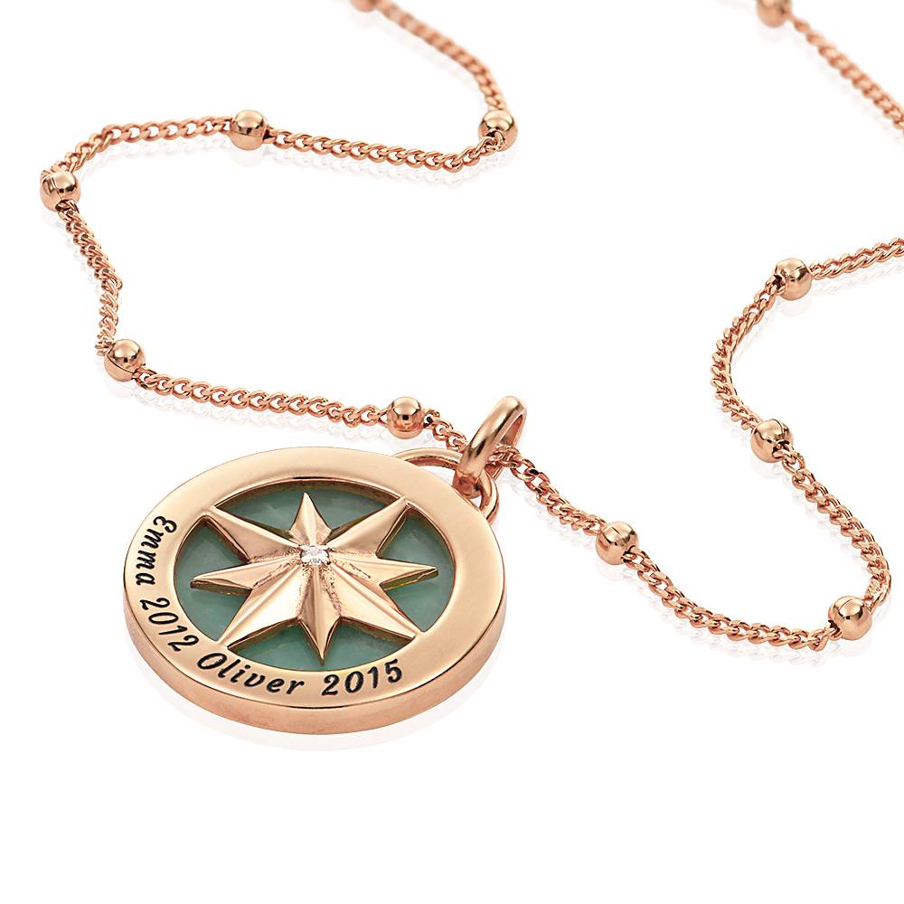 Indgraveret Kompas Halskæde med Halvædelsten i 18k Rosa Forgyldt Sølv