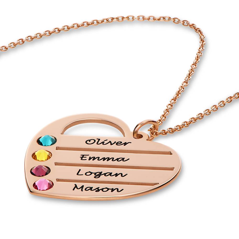 Terry Hjärthalsband med Graverade Namn och Månadsstenar i 18k Roséguld Vermeil